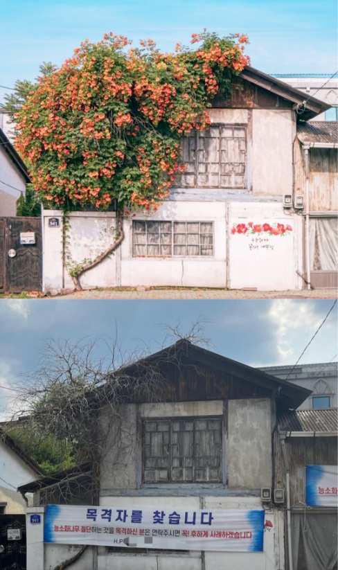 こうした醜いマインドは、冬の季節だけに現れるものではありません。2022年、慶尚北道慶山では「凌霄花(ノウゼンカズラ)を切断した犯人を探しています」という投稿がSNSで大きな話題となりました。50年にわたり塀沿いに育てられ、全国的にも有名になり、多くの人が記念写真を残す観光名所となっていた花木が、ある夜、ノコギリで切断され、さらに除草剤まで撒かれて完全に枯らされてしまったのです。犯人は最後まで特定されませんでしたが、夜中にノコギリを持ち出し、除草剤まで使用した点から、ある程度の知識を持つ男性である可能性が高いと推測されました。専門家や行政の支援によって一定の復元はなされたそうですが、同じ花木ではない以上、そこに刻まれていた人々の思い出が元に戻ることはないでしょう。