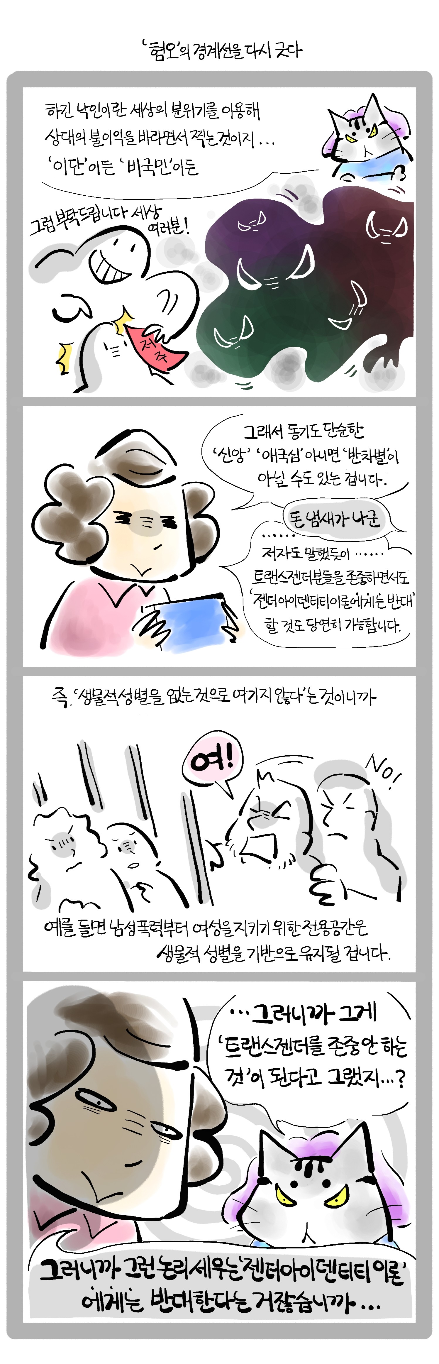 実はかなり前に描いた漫画ですが、この本が韓国で翻訳出版されていないこともあり、またジェンダーアイデンティティをめぐる議論がどうなっているのかもよく知らないため、誤解を受けるかもしれないという心配(実は若干の恐怖)もあって、今ごろようやく韓国語にいたしました。
