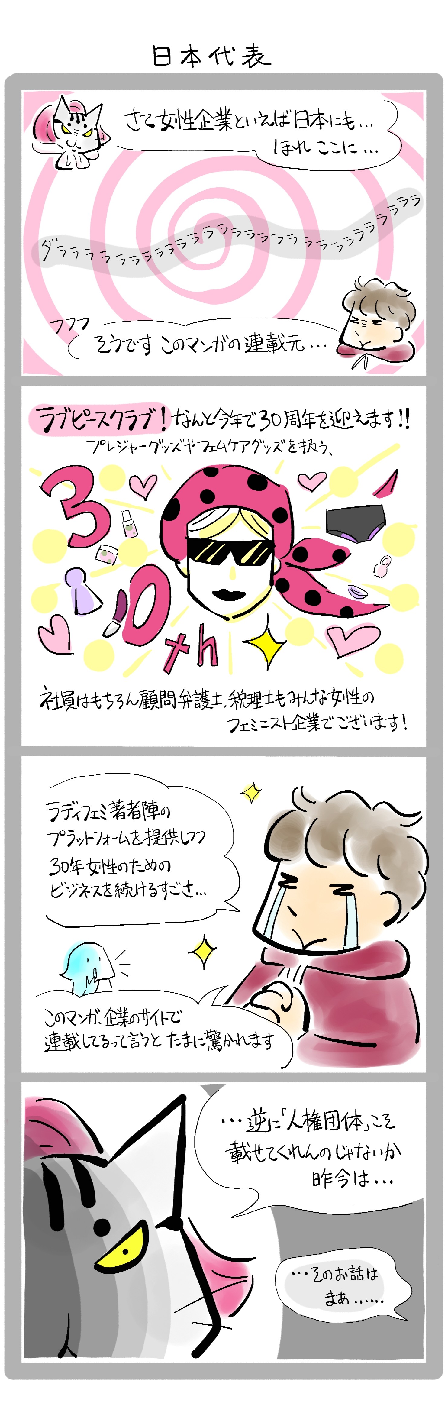 北原みのり | あずみ虫 | ラブピスタッフ | アジュマブックス | おざわじゅんこ | 大杉真心 | 安積遊歩 | アンティル | イトー・ターリ | 大島史子 | オガワフミ | キム・ジナ | 菊池ミナト | 黒川 アンネ | 黒田鮎未 | 具ゆり | JayooByul | 鈴木はな | Justin Mccurry | 爪半月 | 高橋フミコ | 曺美樹 | 塚原久美 | 茶屋ひろし | 灯小 | 中沢あき | 中谷紅緒 | 椿 佳那子 | 朝美 | 橘さざんか | 中島さおり | 成川彩 | ハッカパイプス | 柊佐和 | フェミステーション | 深井恵 | ラフォーレ原宿スタッフ | 李信恵 | 行田トモ | 오오시마후미코 |